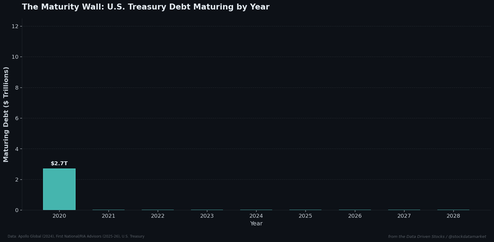 There’s a number floating around Washington right now that should be on the front page of every financial publication in the country, but somehow isn’t getting the attention it deserves. That number is $10 trillion. That’s the approximate amount of U.S. Treasury debt that will mature in 2026 - roughly one-third of all outstanding marketable government debt, rolling over in a single calendar year. It is, by any historical measure, unprecedented.