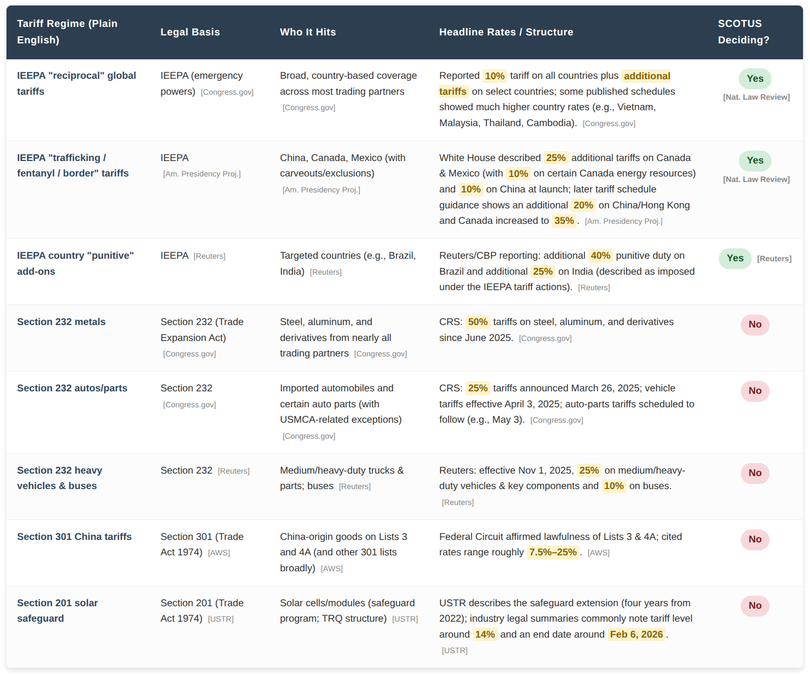2) The tariff map: what’s actually in force right now