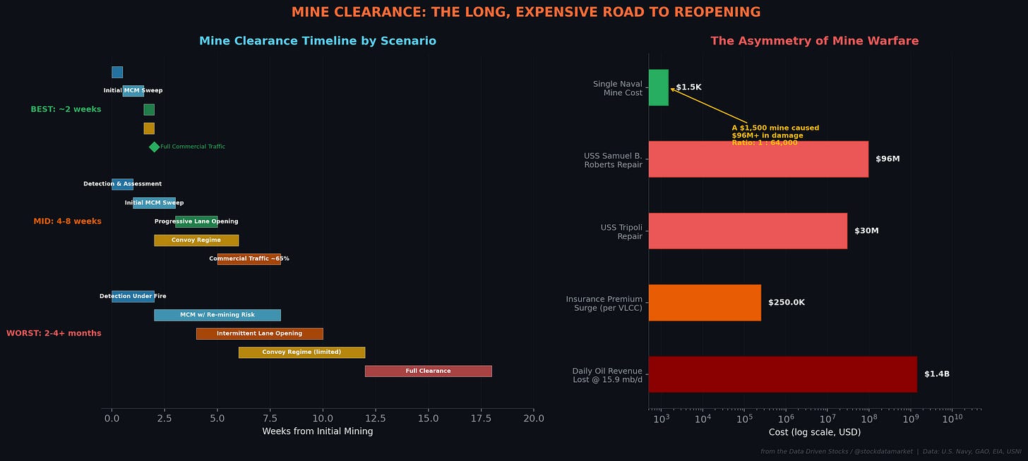 Let me be blunt. Most people reading headlines about the Strait of Hormuz right now are still underestimating what is happening. They see “oil prices up” and think it is another Middle East scare that will fade. They think the U.S. Navy will sort it out. They think there are workarounds. There are not — at least not at the scale required. And mining makes everything exponentially harder to fix.