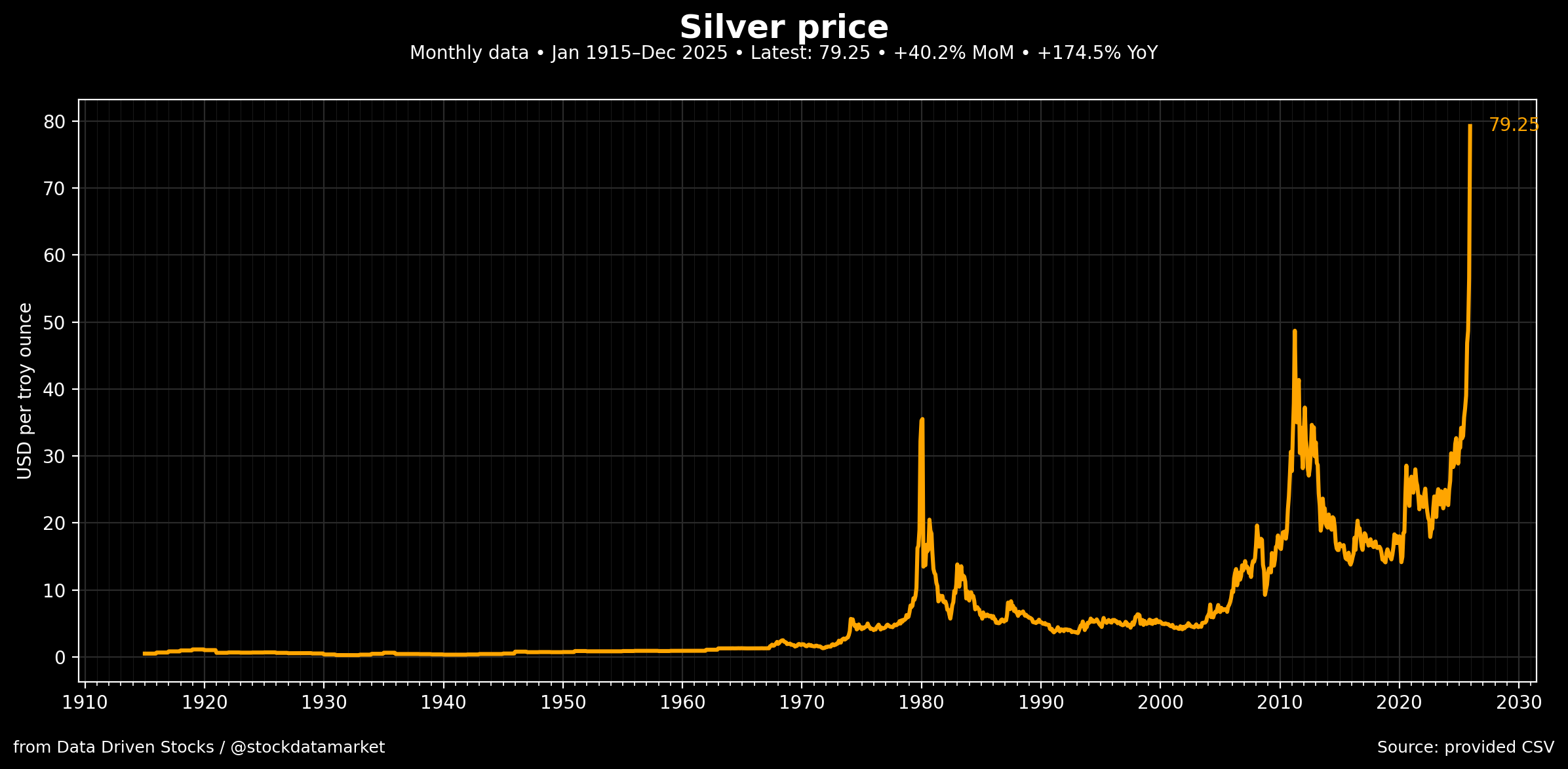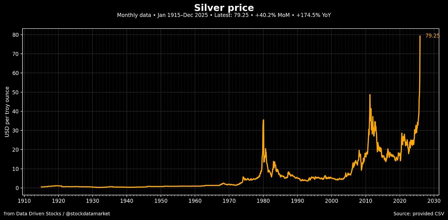 On December 26, silver ripped to a fresh all‑time high around $78.5/oz after a near-vertical run that took it through $70, then $75, then $77 in a matter of days. Reuters described the move as a 9% j…