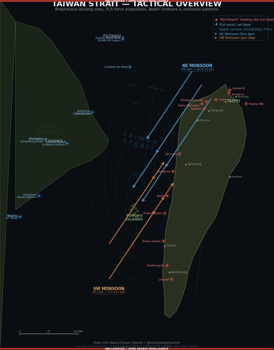 The Taiwanese military has also positioned its surveillance and early warning assets to exploit the long lead time that weather provides. Satellite imagery, weather buoys across the Strait, and SIGINT capabilities mean that any large-scale PLA mobilization during April-May or October would be immediately detected — and those are the only months when mobilization would make operational sense. The rest of the year, any troop movement toward the southeast coast can be reasonably assessed as exercises or posturing rather than imminent invasion preparation.