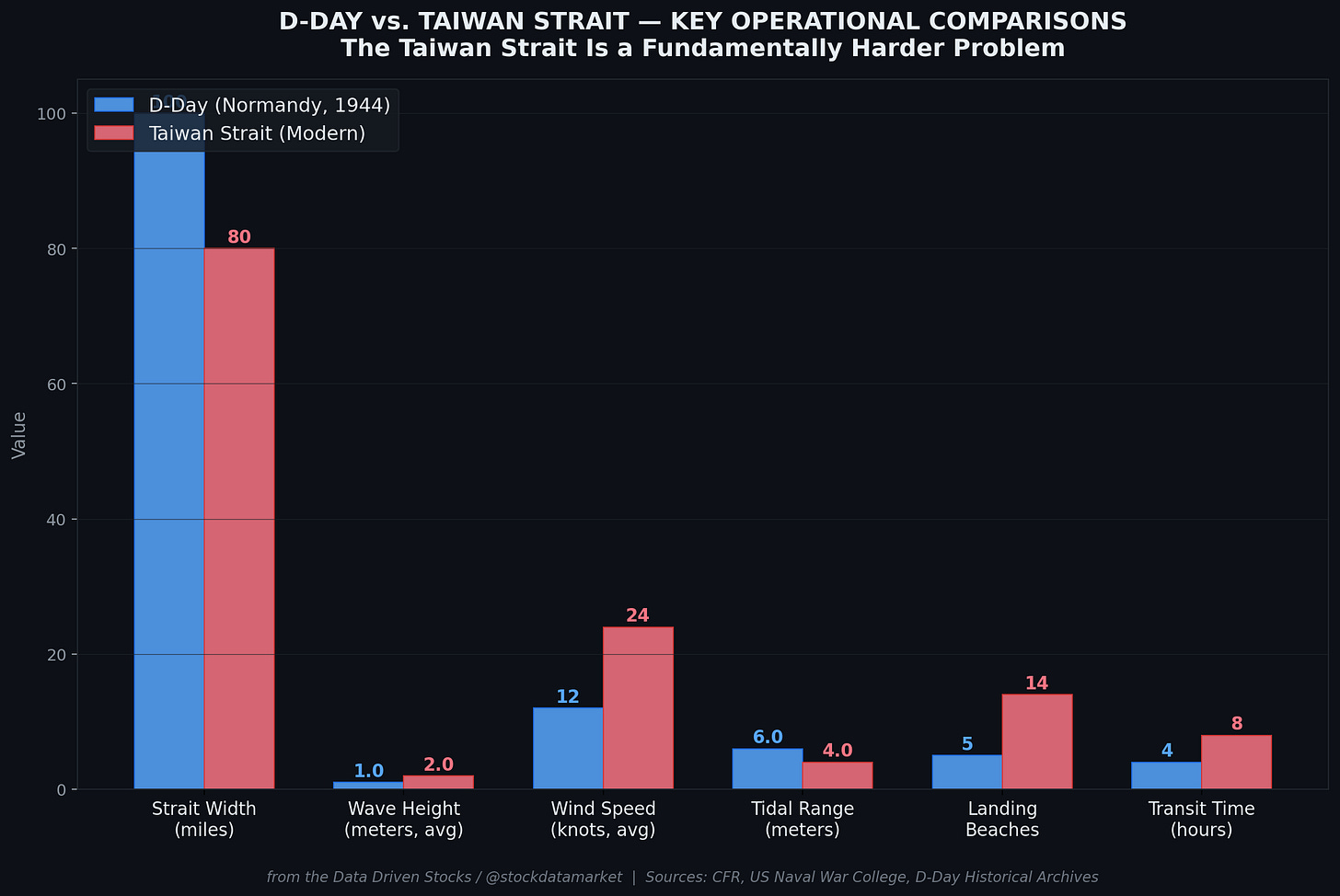 Pundits love comparing a potential Taiwan invasion to D-Day. The comparison is useful, but not in the way most people think. The English Channel at Normandy is roughly comparable in width to the Taiwan Strait (about 100 miles vs. 80 miles at the narrowest). But that’s where the similarities end.