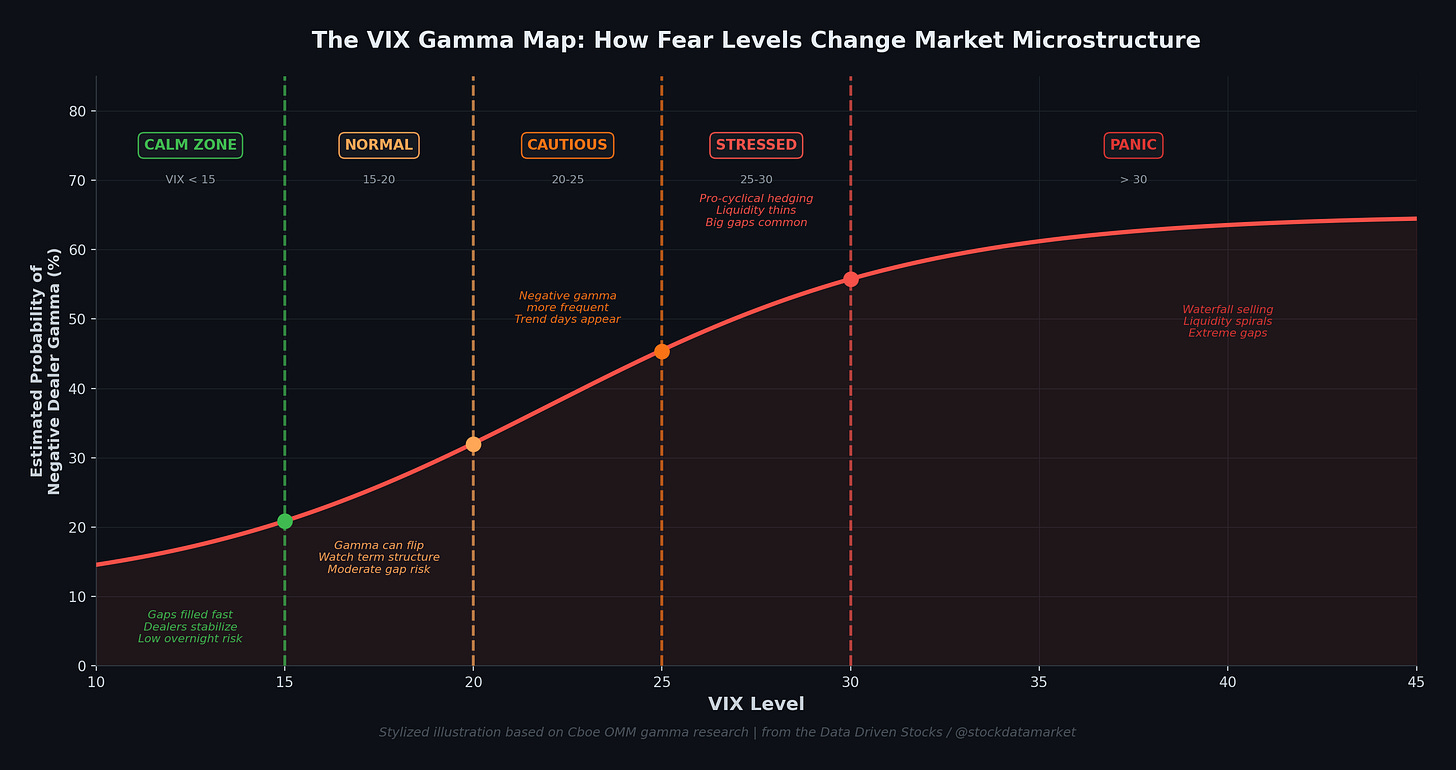 VIX doesn’t just measure fear. It’s telling you who’s driving the bus - stabilizing dealers, or destabilizing ones - and whether the next gap is going to be an opportunity or a disaster.